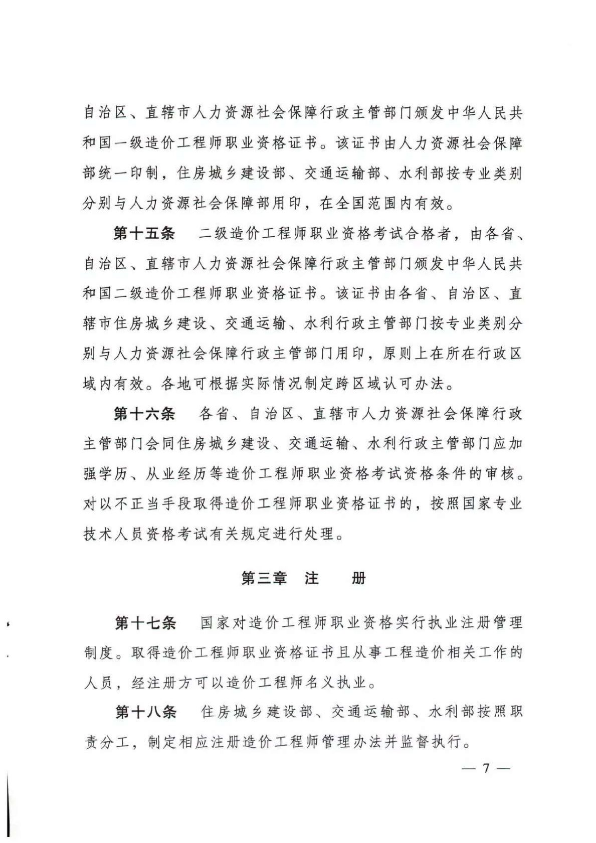 住房城鄉(xiāng)建部 交通運(yùn)輸部 水利部 人力資源社會(huì)保障部關(guān)于印發(fā)《造價(jià)工程師職業(yè)資格制度規(guī)定》《造價(jià)工程師職業(yè)資格考試實(shí)施辦法》的通知